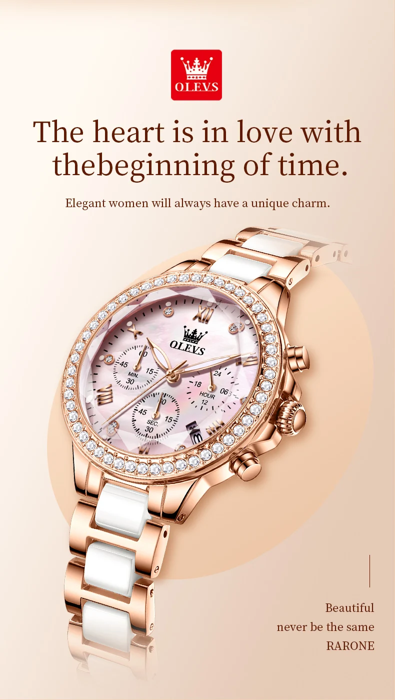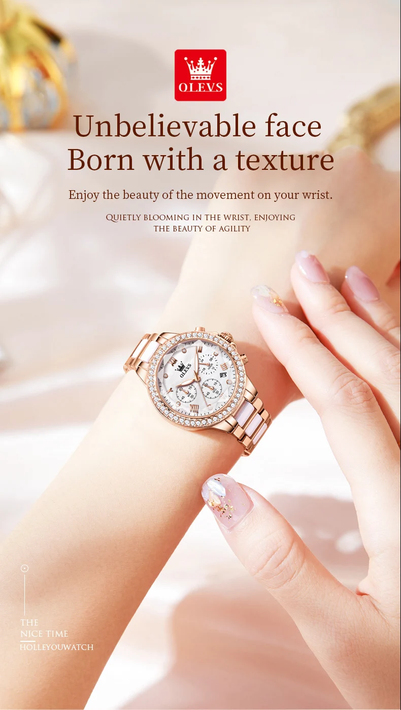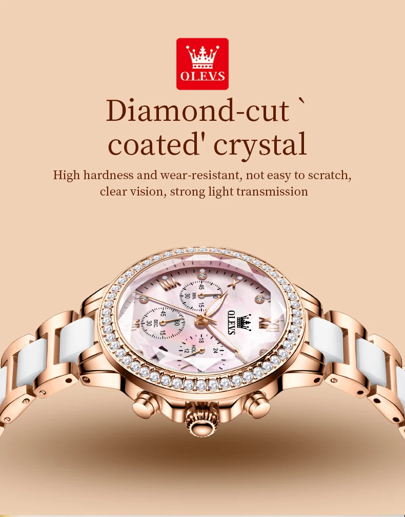 OLEVS Exquisite Women's Watches Prismatic Mirror Surface Quartz Watch Chronograph Gift Bracelet Calendar Waterproof Female Watch
